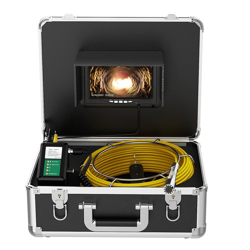Everything comes in a heavy-duty aluminum case: 7-inch monitor, camera, 50m cable, and accessories. Accordingly, this sewer inspection near me solution is always ready for field use.